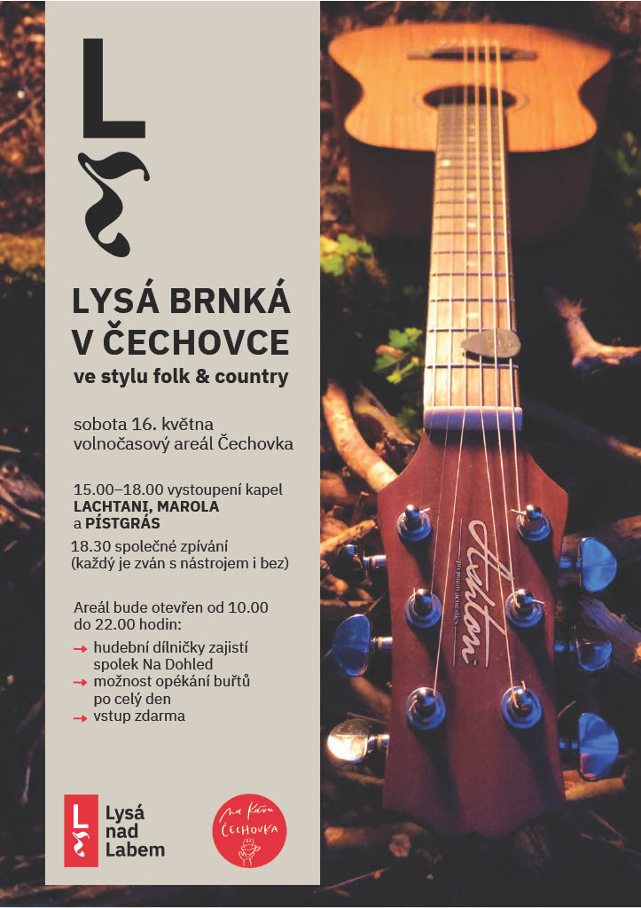 Folk & country festival na Čechovce v Lysé nad Labem. 16. 5. 2026, 10:00–22:00. Kapely LACHTANI, MAROLA, PÍSTGRÁS. Vstup zdarma.
